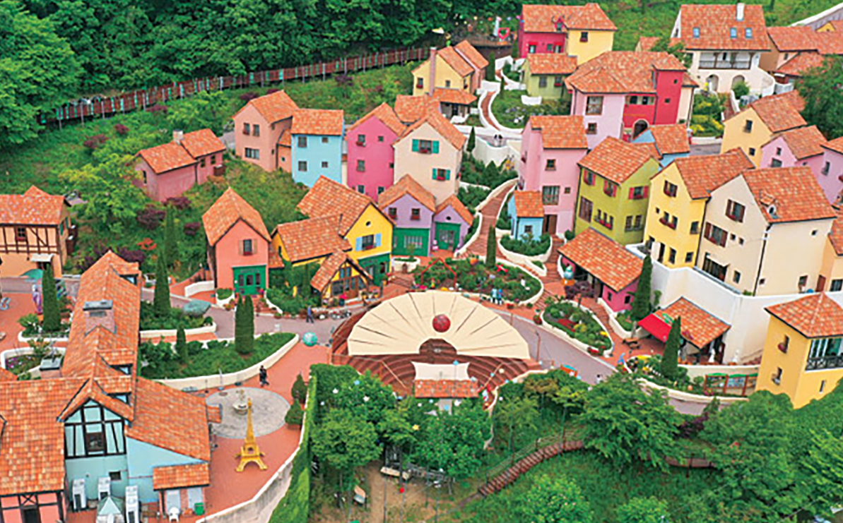 쁘띠프랑스를 거니는 것은 마치 프랑스 마을의 조약돌 거리를 걷는 듯한 느낌이다.